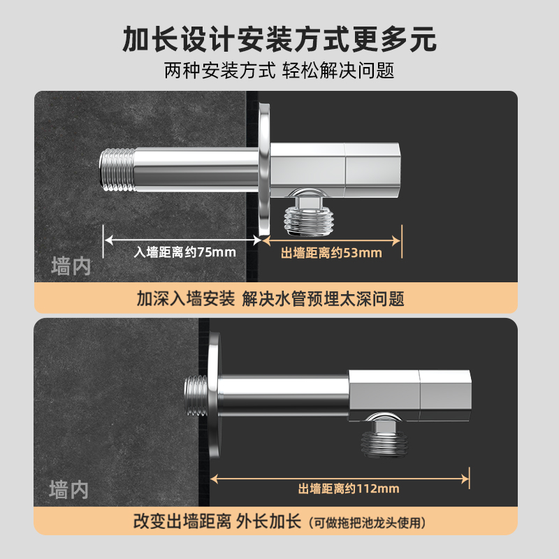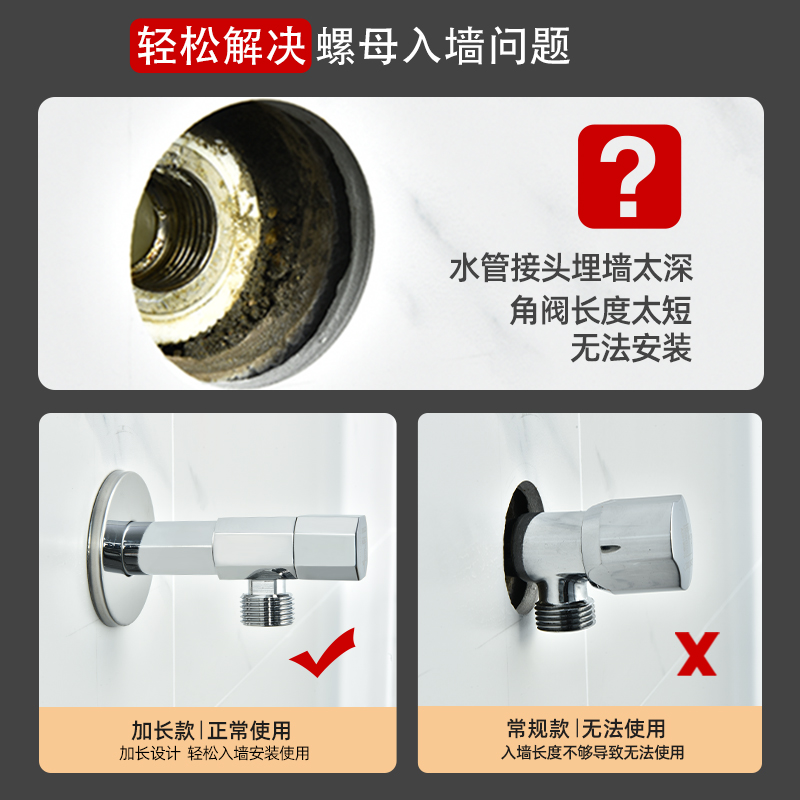 潜水艇加长角阀全铜三角阀家用阀门开关4分八字阀冷热水器马桶水