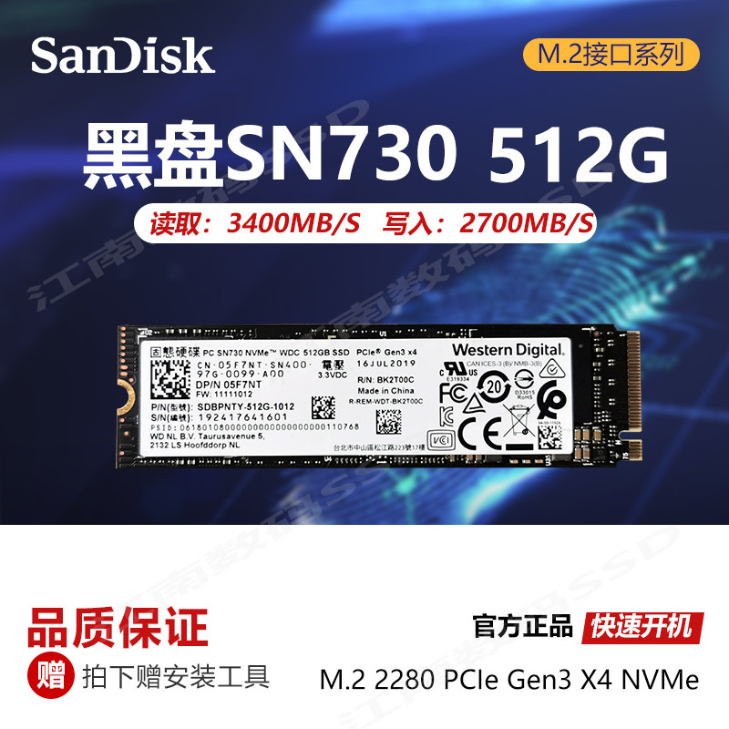 512G NVME固态硬盘SN750黑盘2T台式 M.2 2280 SN720 西数SN730