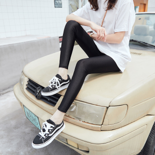高腰修身 薄款 胖mm加肥加大码 女外穿七分九分黑色打底裤 显瘦 光泽裤