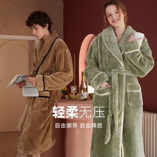 法兰绒家居服睡衣女秋冬加厚加绒保暖冬珊瑚绒睡袍男中长浴袍情侣
