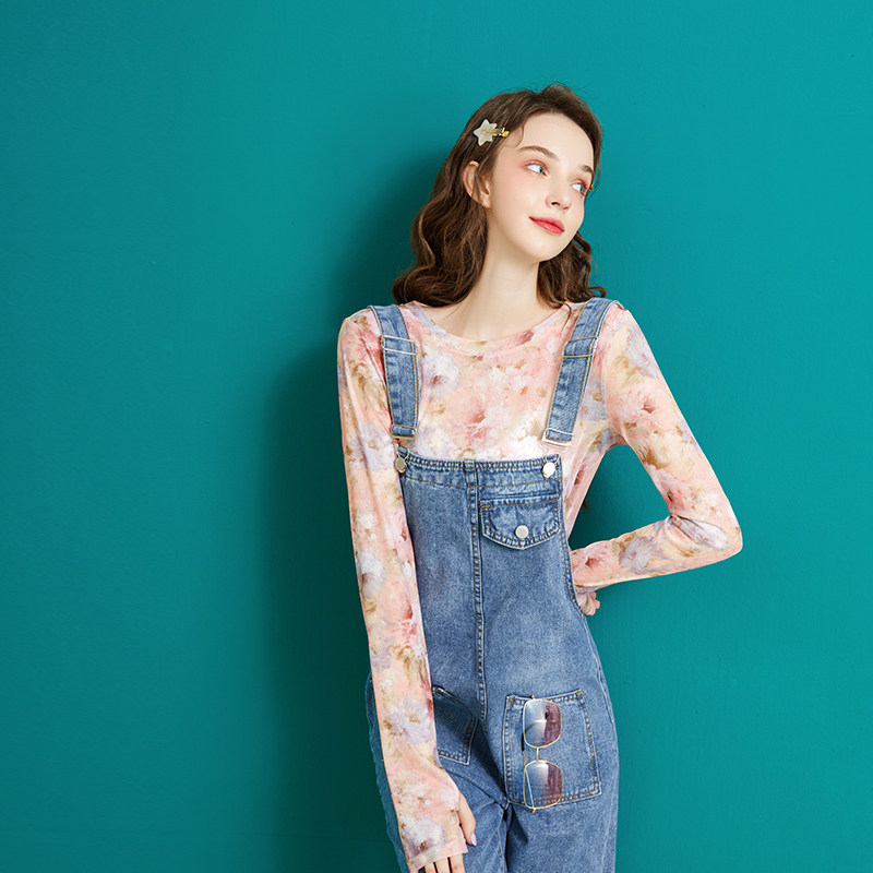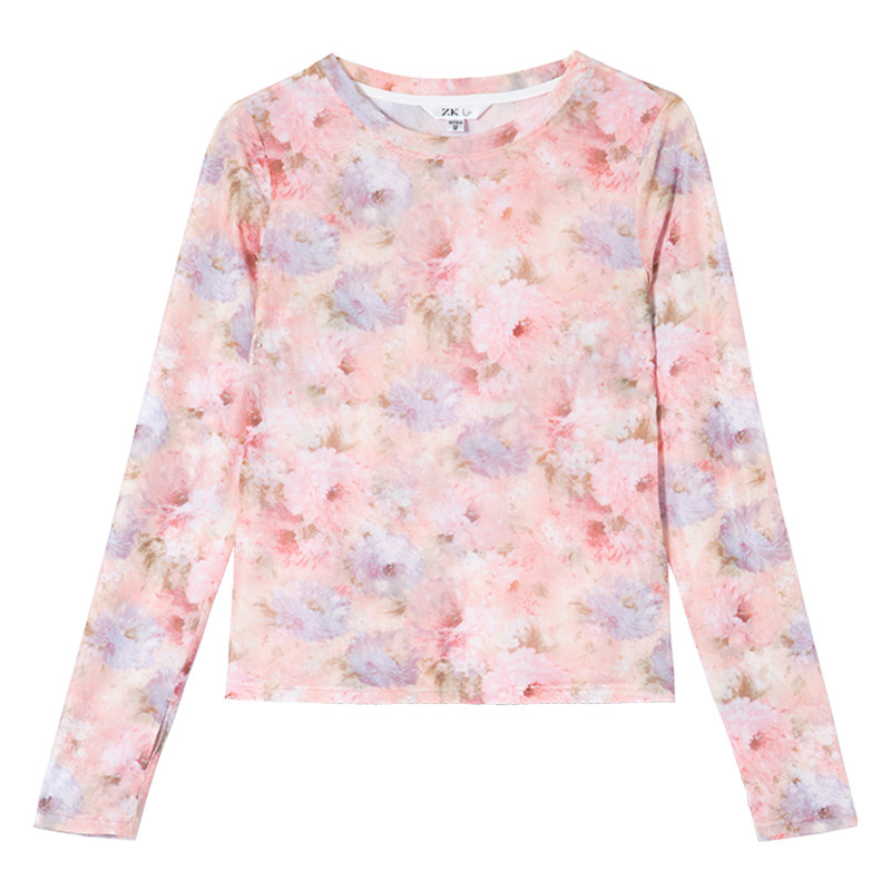 花朵2024春夏新款 透明防晒网纱上衣仙女长袖 t恤内搭叠穿打底衫