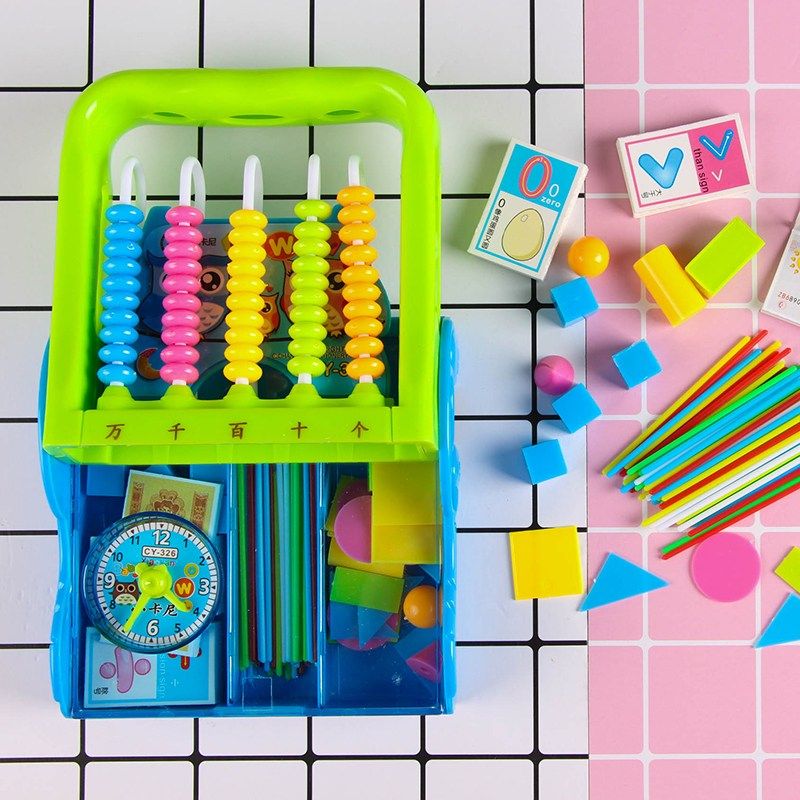 儿童计数器数学教具幼儿园女12档小学早教学具盒小学生算盘珠心算小学一年级上册学生图形小棒数数棒学教具盒