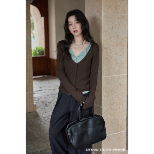 针织衫 流行洋气高级假两件短款 显瘦上衣小众时尚 夕蒙2026春秋修身