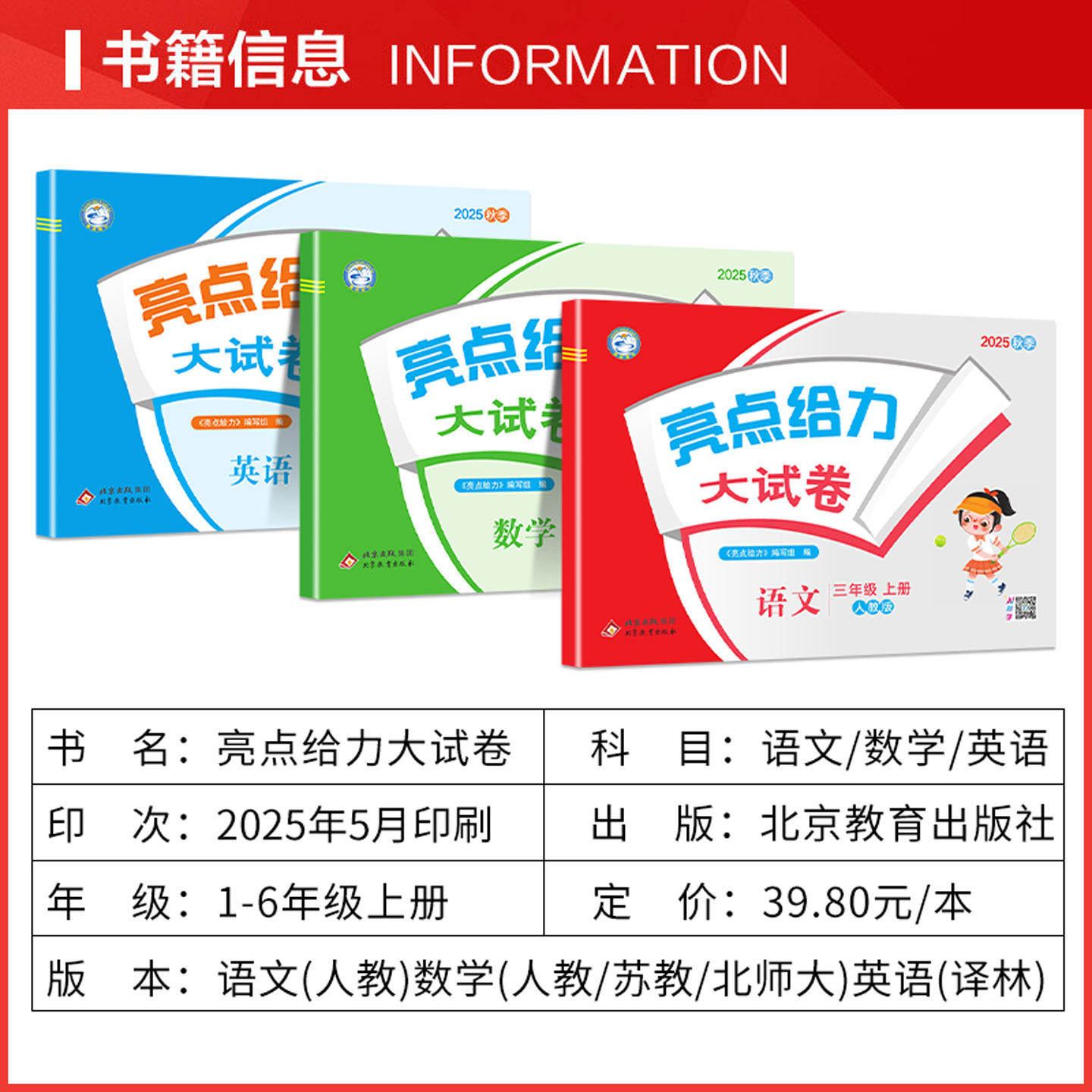 期末测试卷同步训练 英语江苏译林版 2025秋亮点给力大试卷一年级二年级三年级上册四4五5六6年级下册语文部编人教版 数学苏教北师版