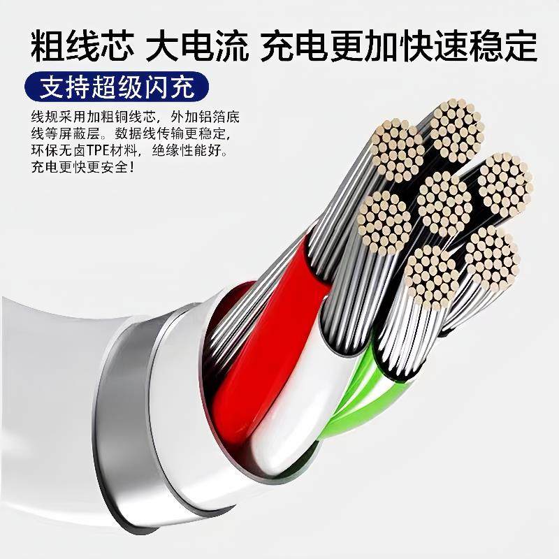 100W超级快充三合一充电线6A适用苹果华为安卓手机通用一拖三数据线透明芯片type c带灯