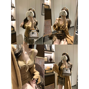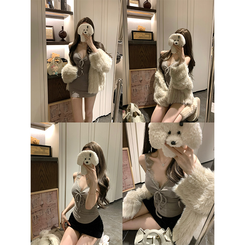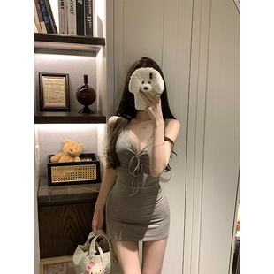 收腰显瘦包臀短裙子 磨毛v领蕾丝绑带吊带连衣裙女秋季 NAYA CHAN