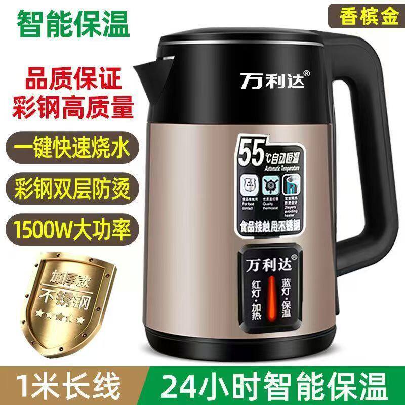 万利达304不锈钢电热烧水壶双层防烫大容量家用自动断电保温水壶