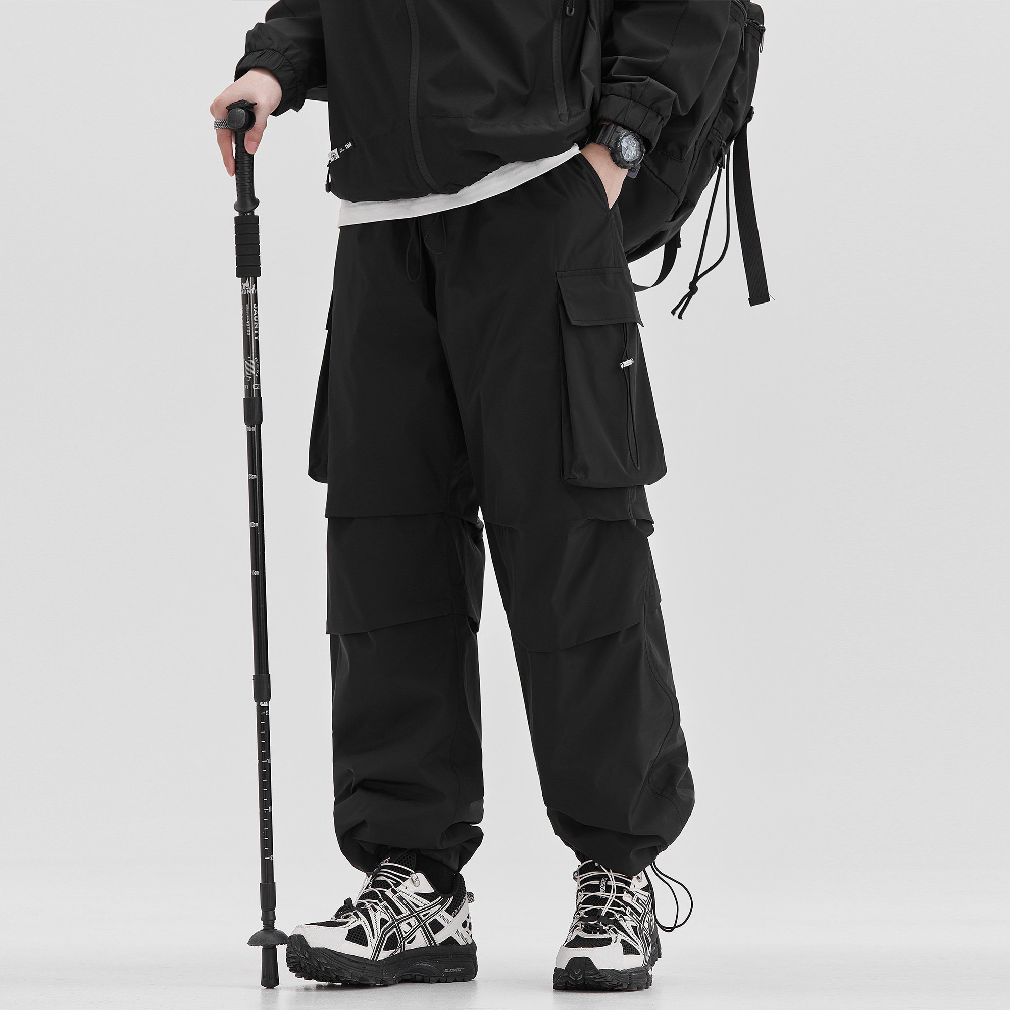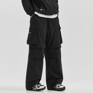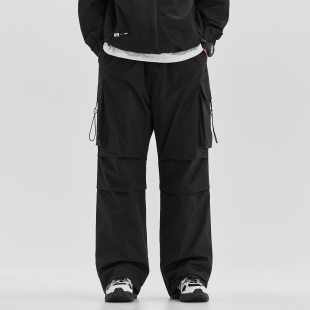 男秋冬90白鸭绒多口袋宽松直筒阔腿裤 羽绒休闲裤 子 黑色工装 ALLIN