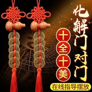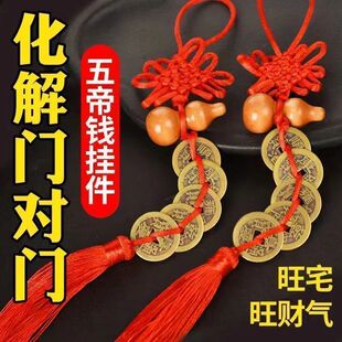 五帝钱葫芦挂件门对门铜钱串纯黄铜****邻居门挂五吊钱真品吉祥物