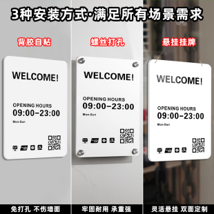 营业时间告示牌定制玻璃贴美发理发店墙面装 饰美容院店铺工作广告牌展示贴纸门店门口营业中公休提示招牌挂牌
