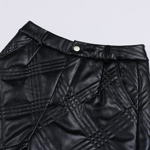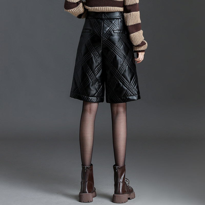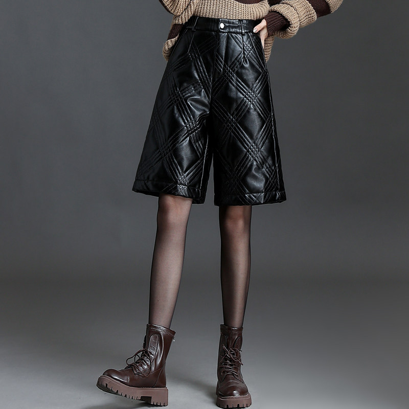 显瘦高腰五分裤 秋冬季 直筒裤 格纹靴裤 夹棉加厚皮裤 短裤 女2025新款