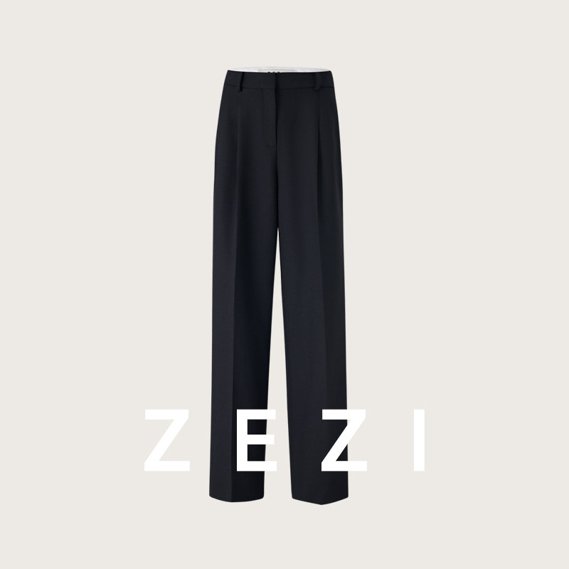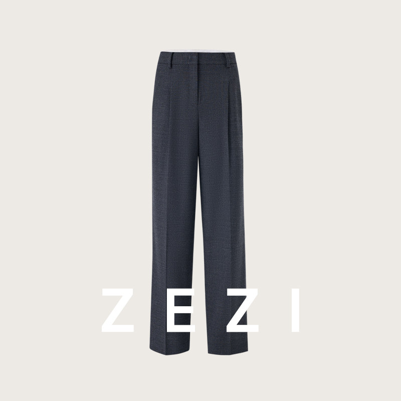 百搭通勤女裤 时尚 子直筒斜纹 女春秋新款 zezi美利奴羊毛微阔休闲裤