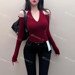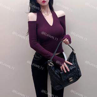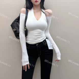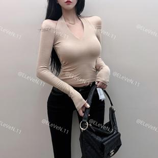 T恤设计感秋冬打底衫 露肩挂脖显瘦长袖 女 谁穿谁性感 内搭没输过