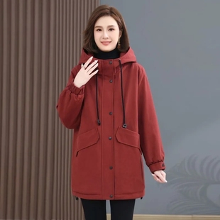 棉服外套 中年妈妈宽松中长款 加绒加厚派克服女士2025年秋冬季 新款