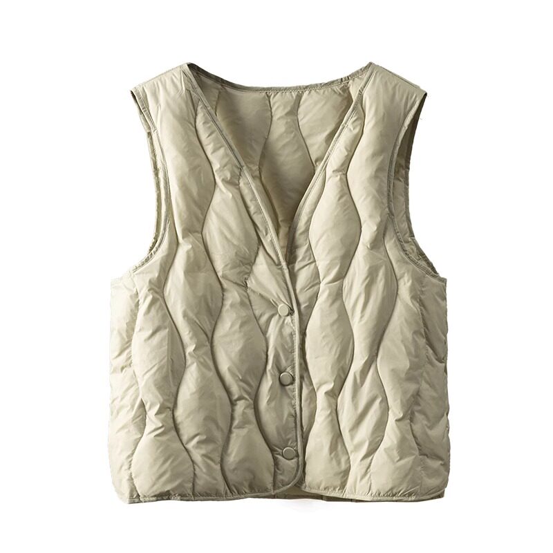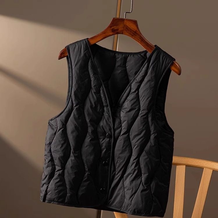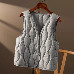 特 轻盈菱格V领90绒羽绒服马甲女春天家H5I40 反季 白菜价