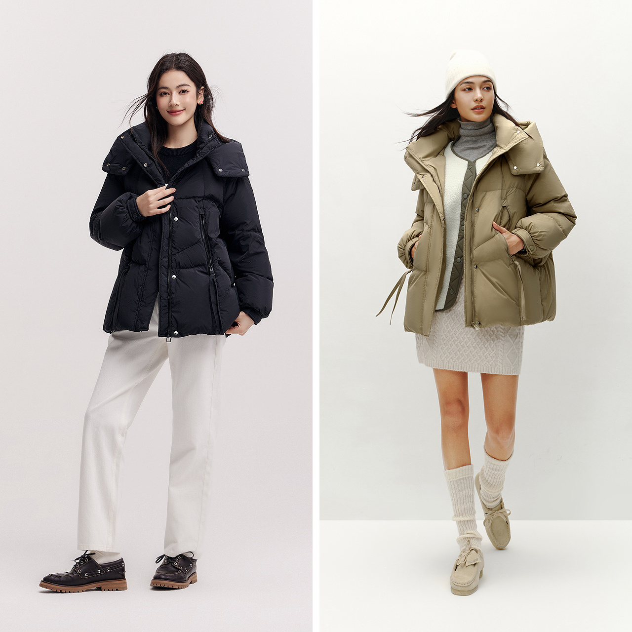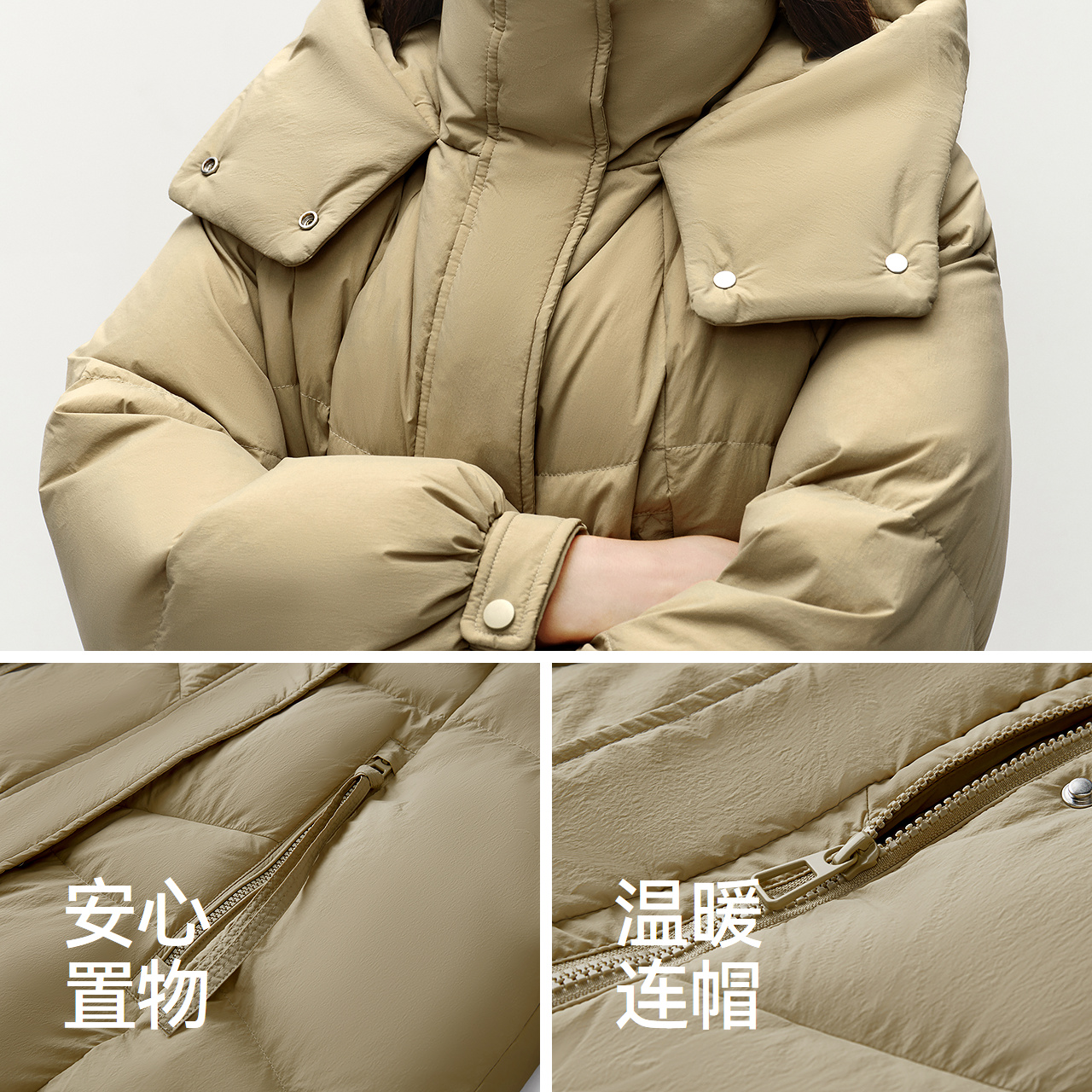 80绒子宽松连帽质感简约百搭休闲外套 厚款 森马羽绒服女冬季 中长款
