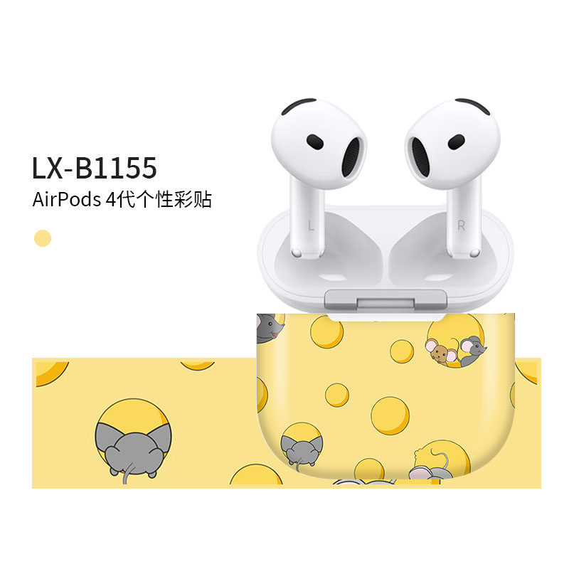 适用于苹果AirPods4耳机可爱卡通贴膜全包彩膜3M贴纸保护膜3M软膜