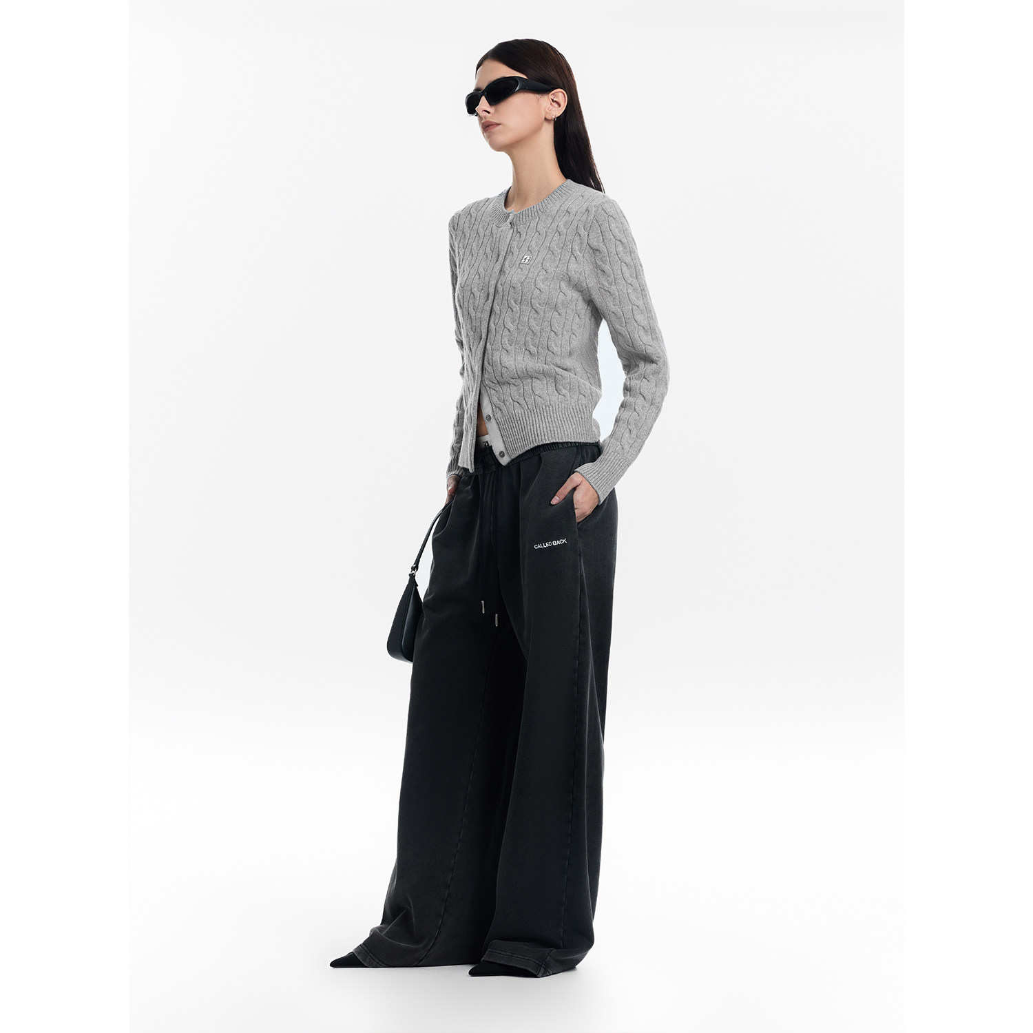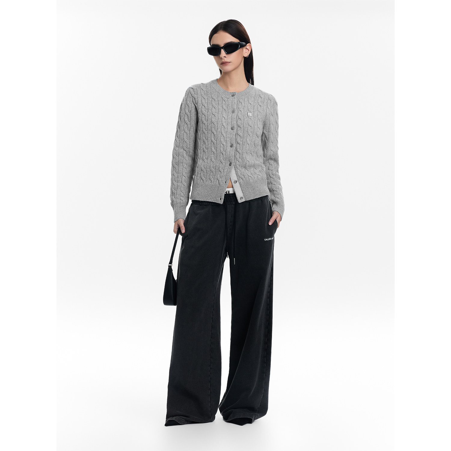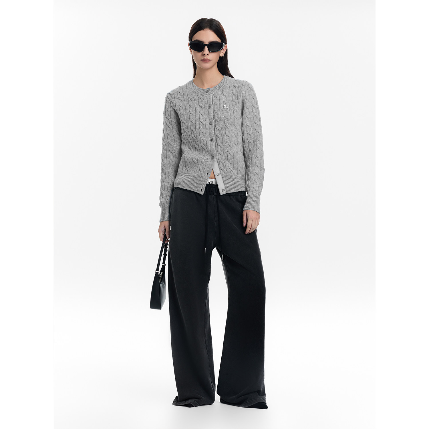 长袖 CALLED 女休闲时尚 灰色麻花针织开衫 上衣 BACK2026春夏新款