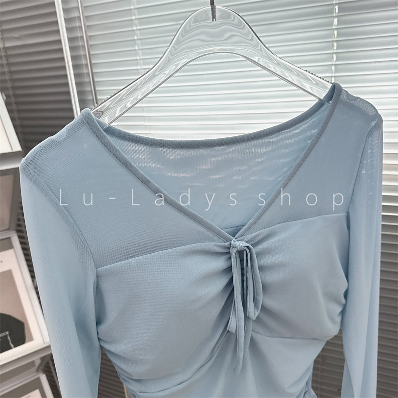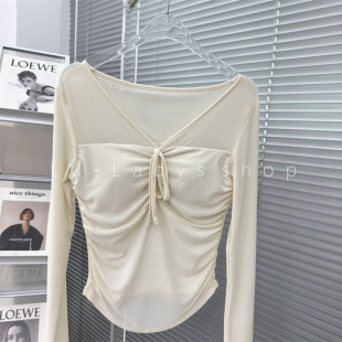年度热款 带半固定胸垫瑜伽服女拼接网纱打底健身上衣普拉提长袖