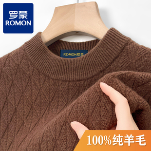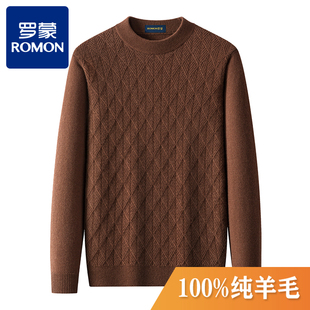 毛衣中领针织提花圆领羊绒衫 半高领加厚冬季 男士 罗蒙100%纯羊毛衫