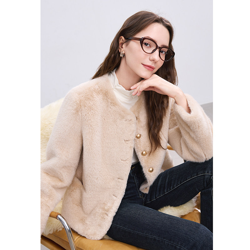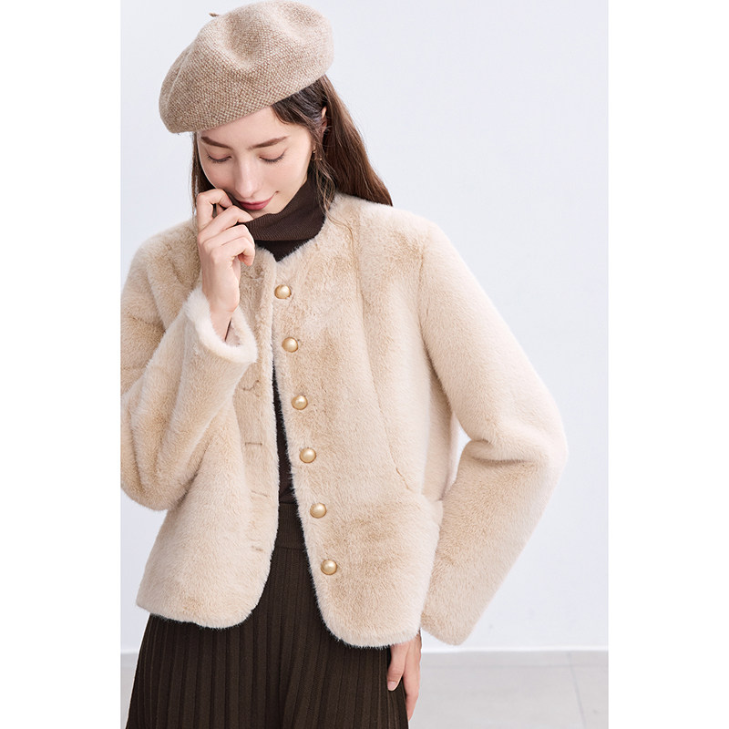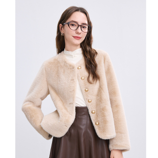 betu百图仿皮草外套气质仿貂绒皮毛一体保暖女式 外套