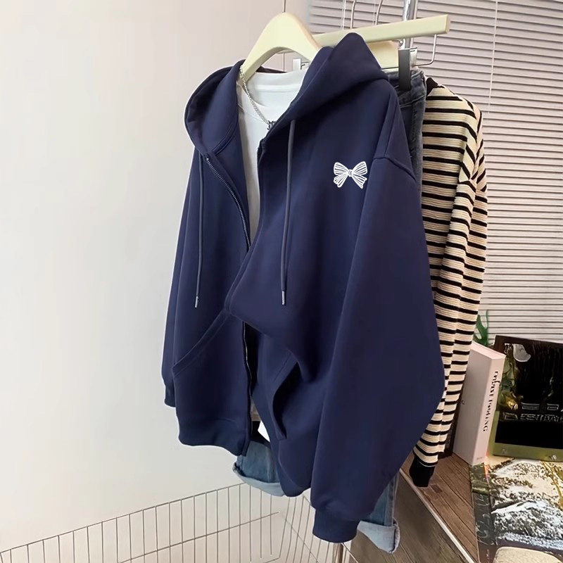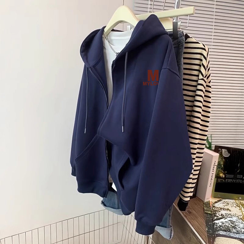 vintage大码 连帽卫衣女ins正肩显瘦上衣 宽松初冬外套加绒加厚开衫