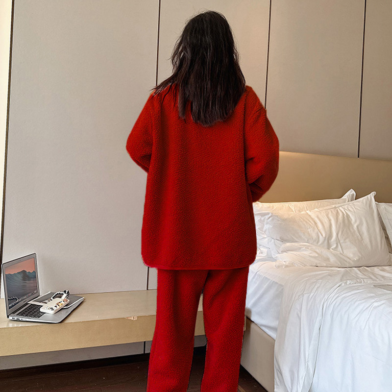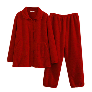 200斤胖m珊瑚绒保暖家居服红色本命年套装 睡衣冬季 女加绒加厚大码