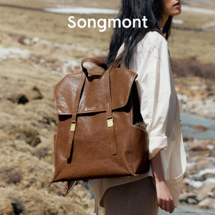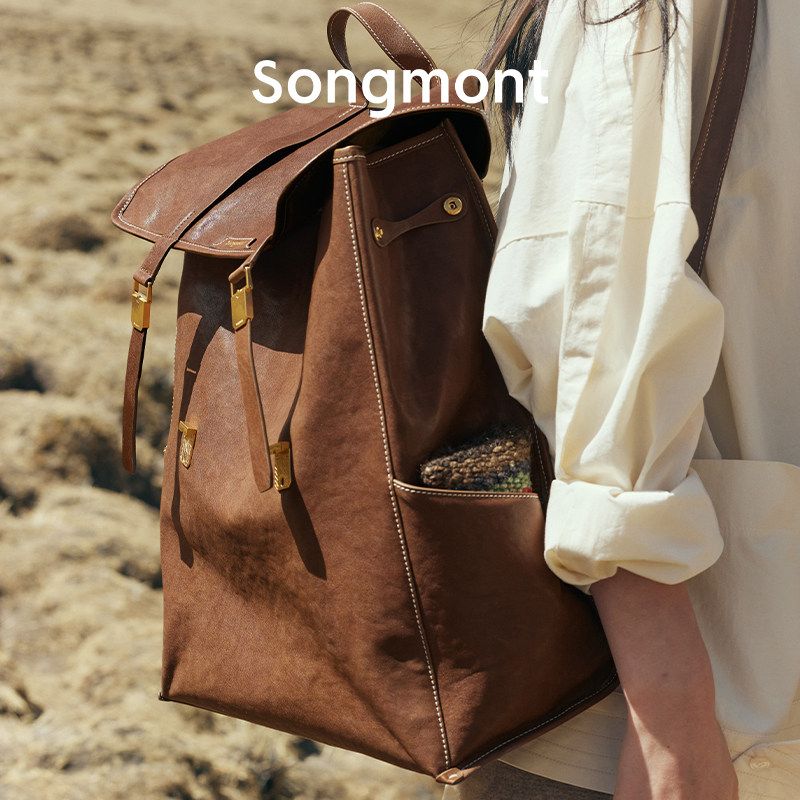 Songmont山下有松山行系列觅野大号双肩包设计师款 植鞣牛皮电脑包