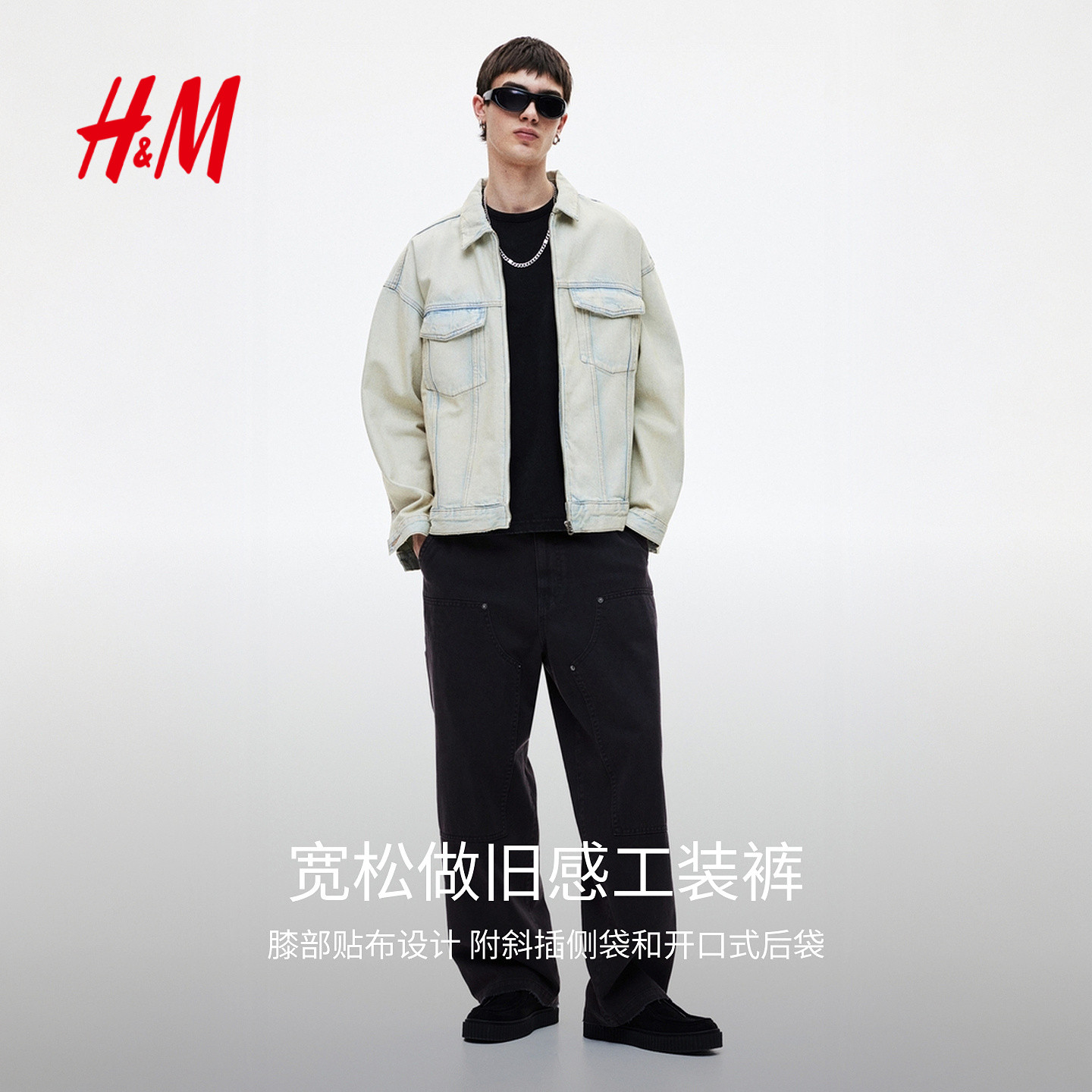 阔腿棉质潮流柔软时尚 春季 宽松版 工装 1261485 HM男装 长裤 休闲裤
