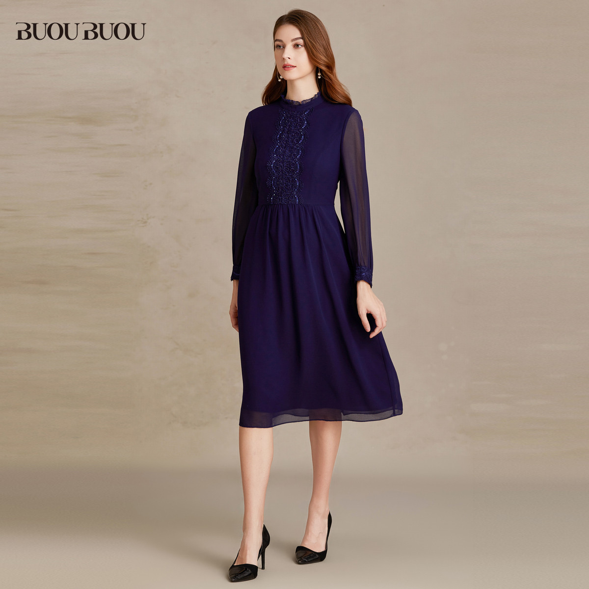 早秋新品 Buou商场同款 Buou 蕾丝拼接连衣裙女BI3G184 9.16上新