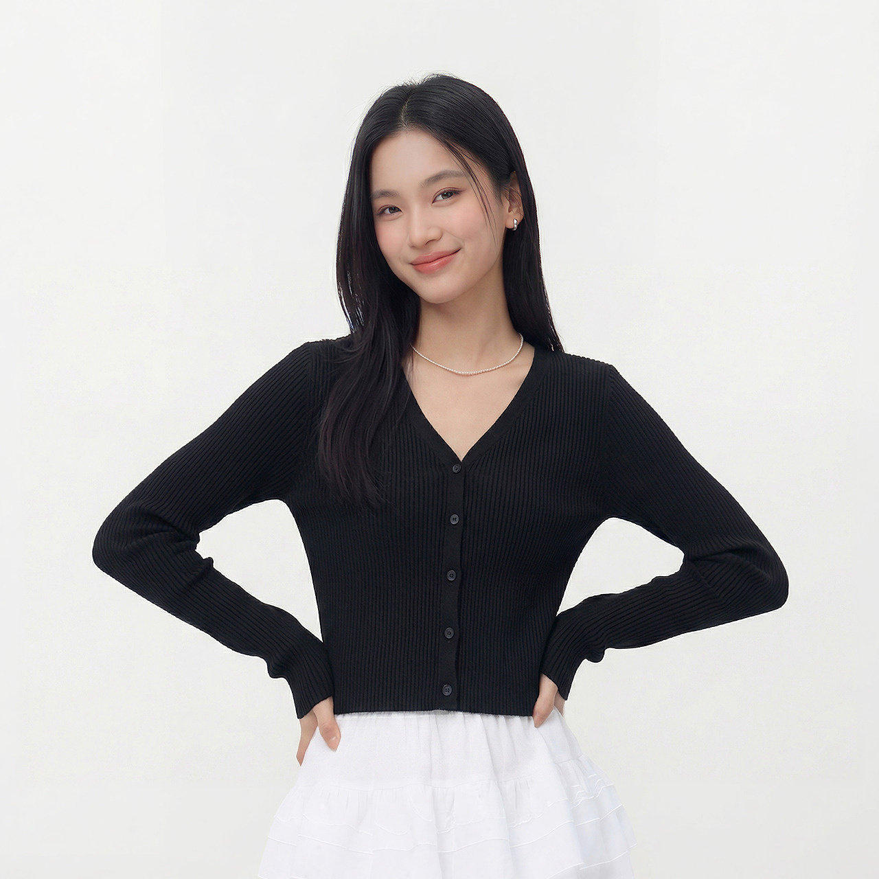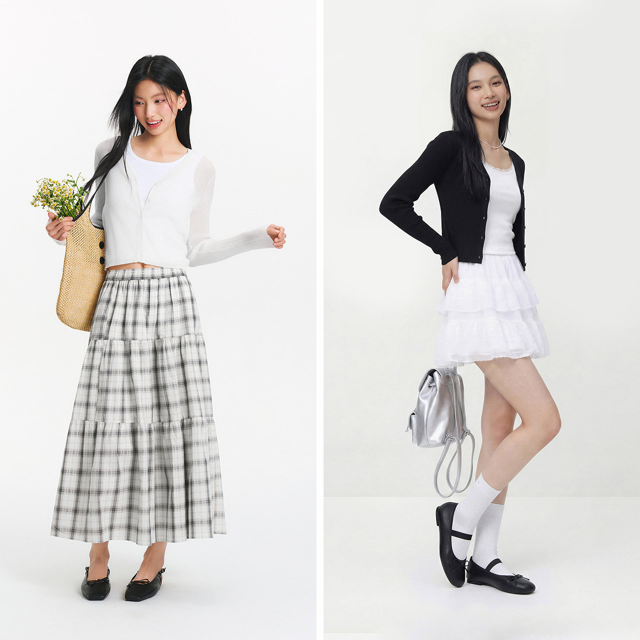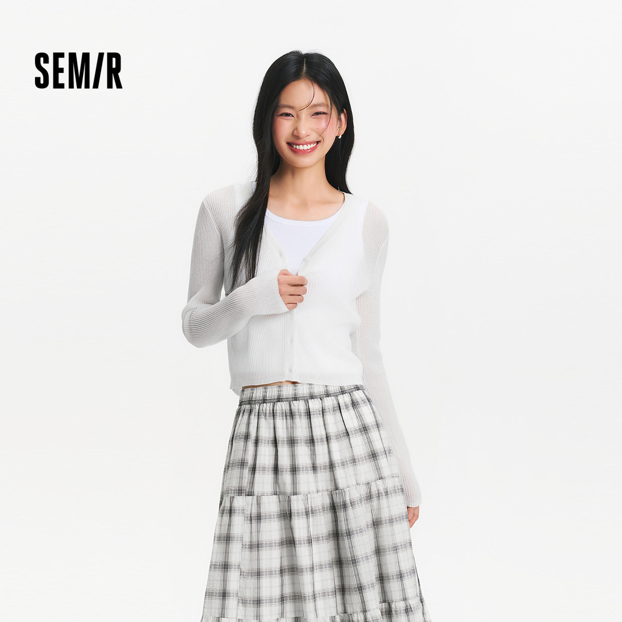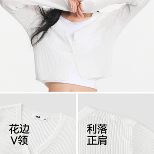 纯色花边V领正肩衣服简约气质叠穿上衣 修身 森马针织开衫 女夏短款