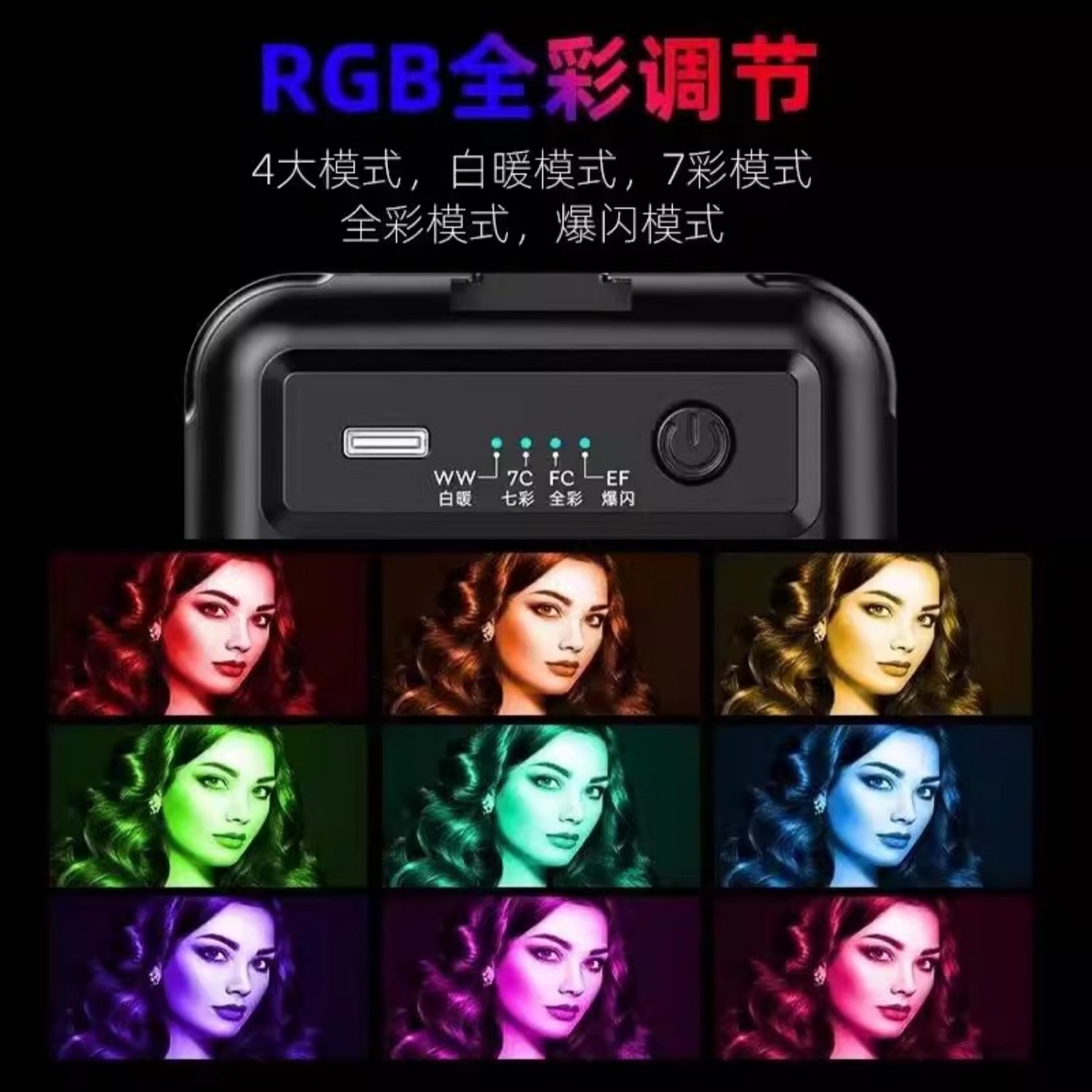 wonew七彩蜗牛RGB迷你补光灯口袋灯便携LED美颜打光灯手机自拍相机拍摄拍照摄影灯神器抖音桌面手机支架