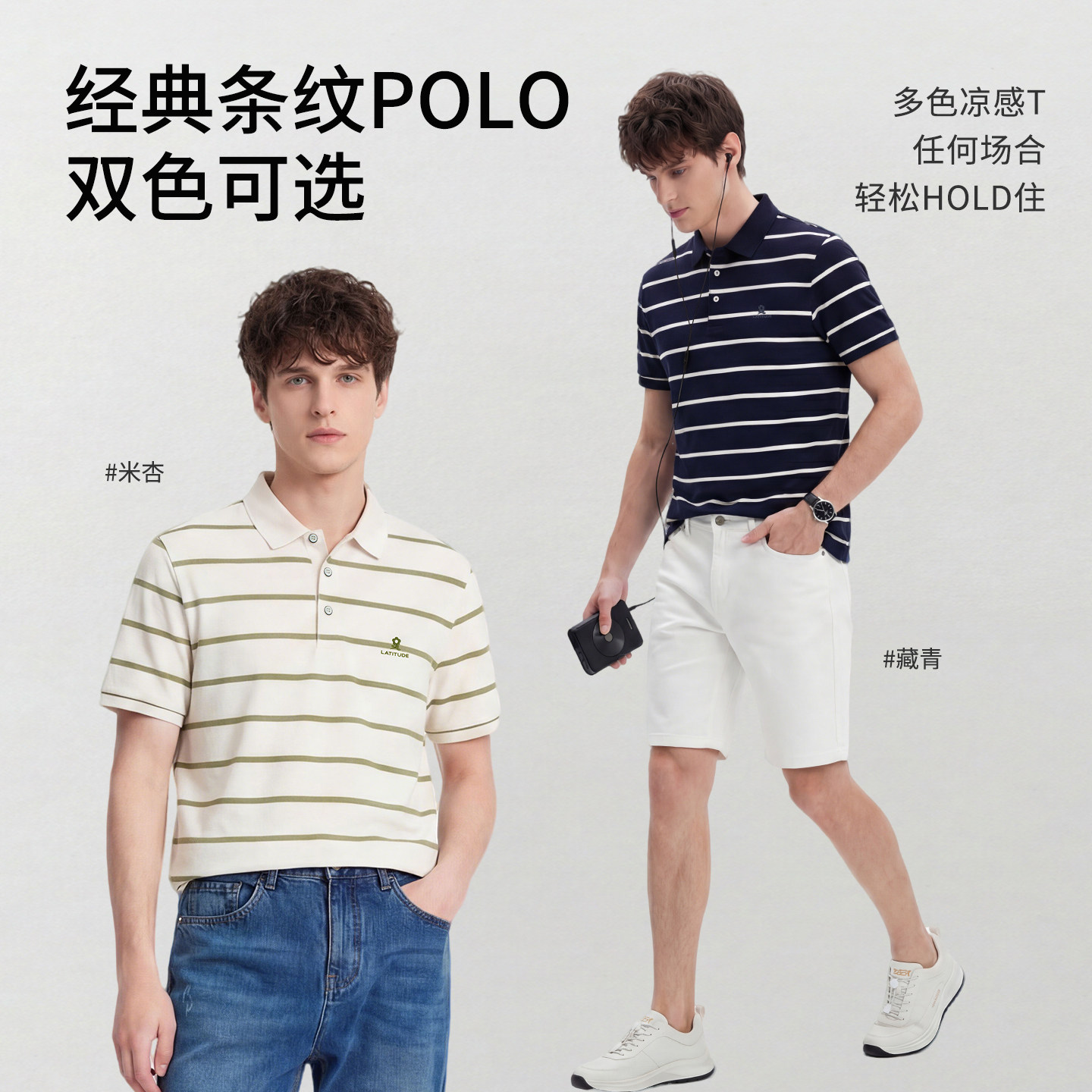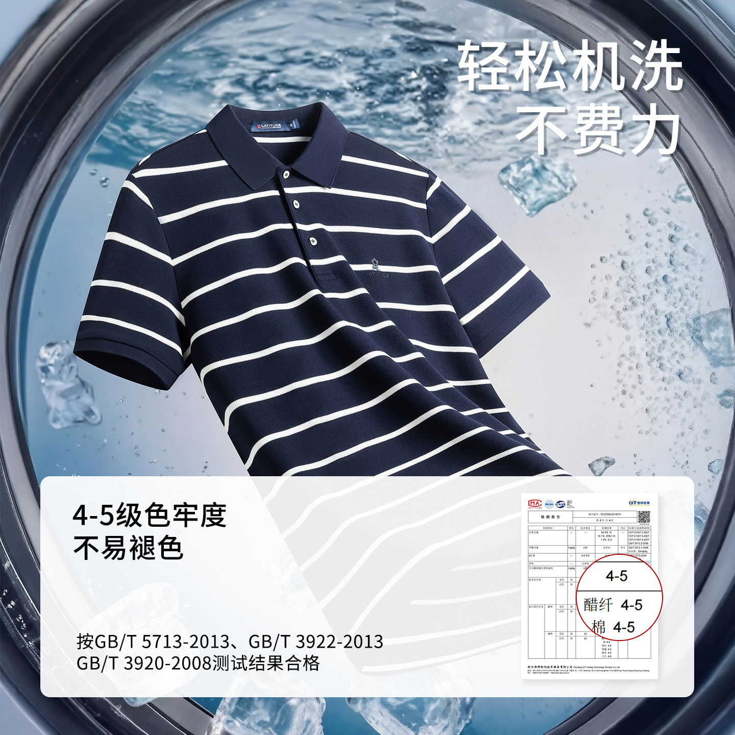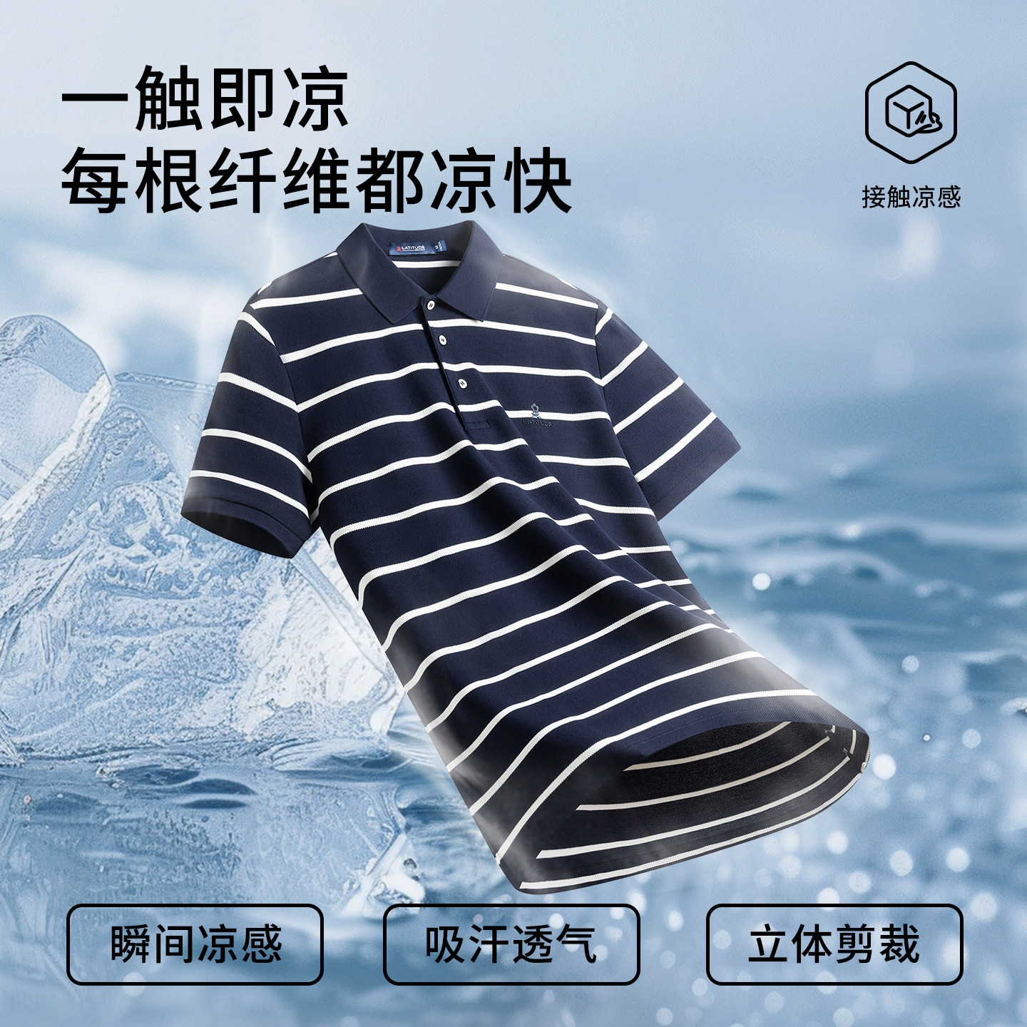 长绒棉 Polo衫 重磅珠地 男短袖 翻领条纹休闲T恤凉感J 梦特娇夏季
