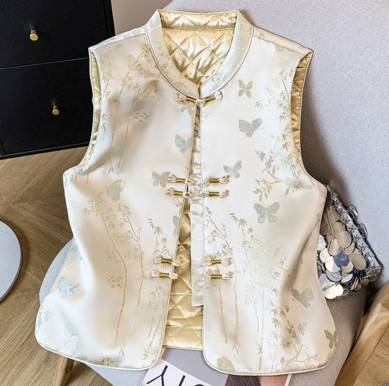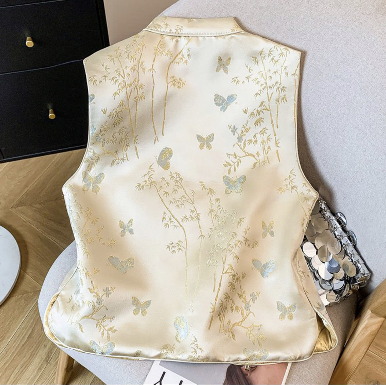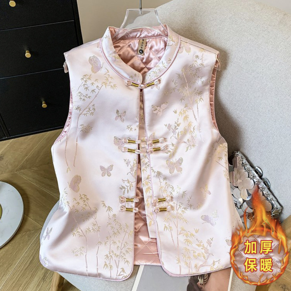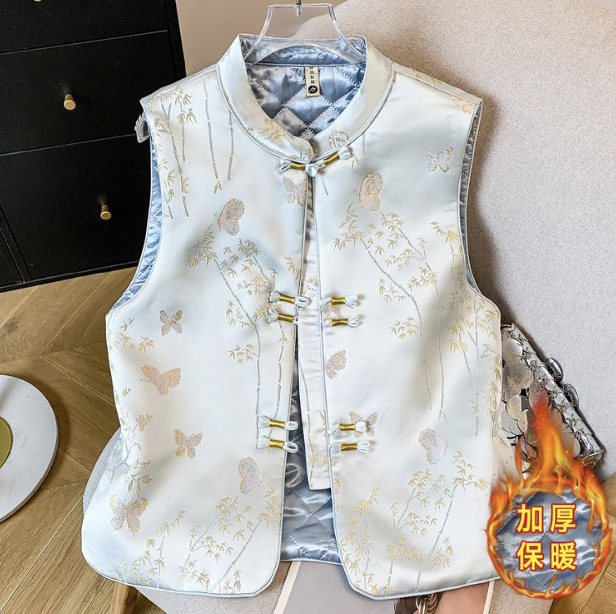 复古盘扣百搭马夹背心女外搭上衣 春季 新中式 国风提花立领马甲女装