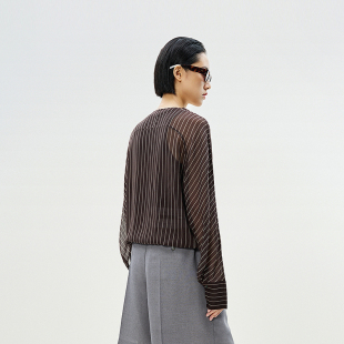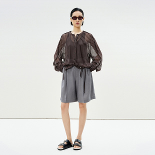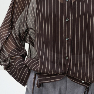 女2P4210130 上衣休闲条纹气质罩衫 LESS夏宽松桑蚕丝长袖 衬衫