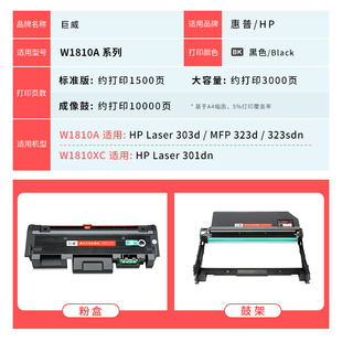 303d打印机墨盒MFP 301dn 323d 323sdn硒鼓W1810A 鼓架 适用惠普181A粉盒HP W1810X碳粉盒W1816A成像鼓 Laser