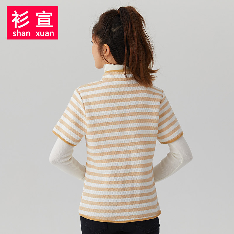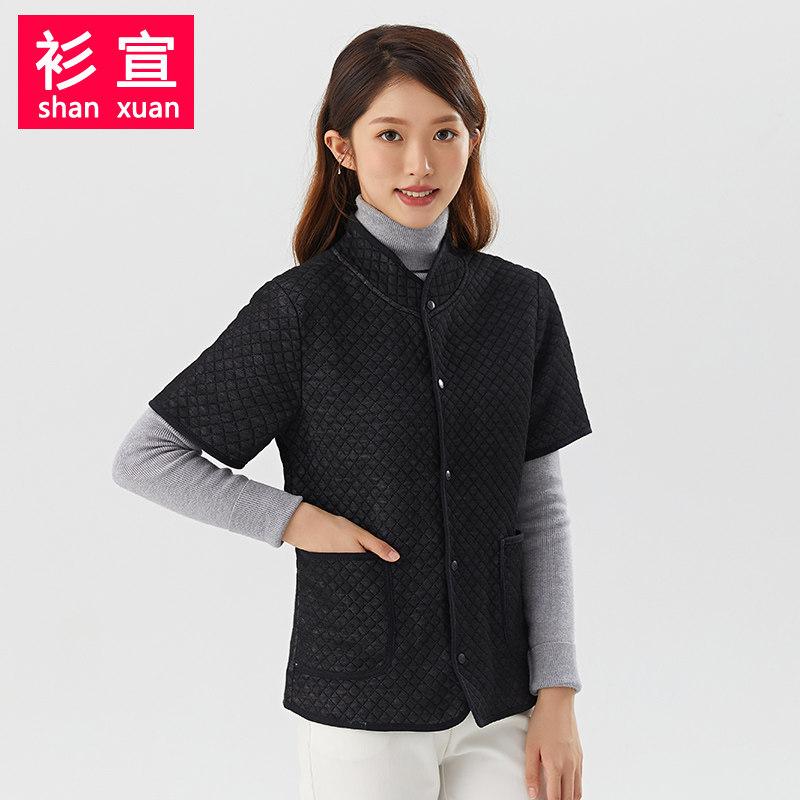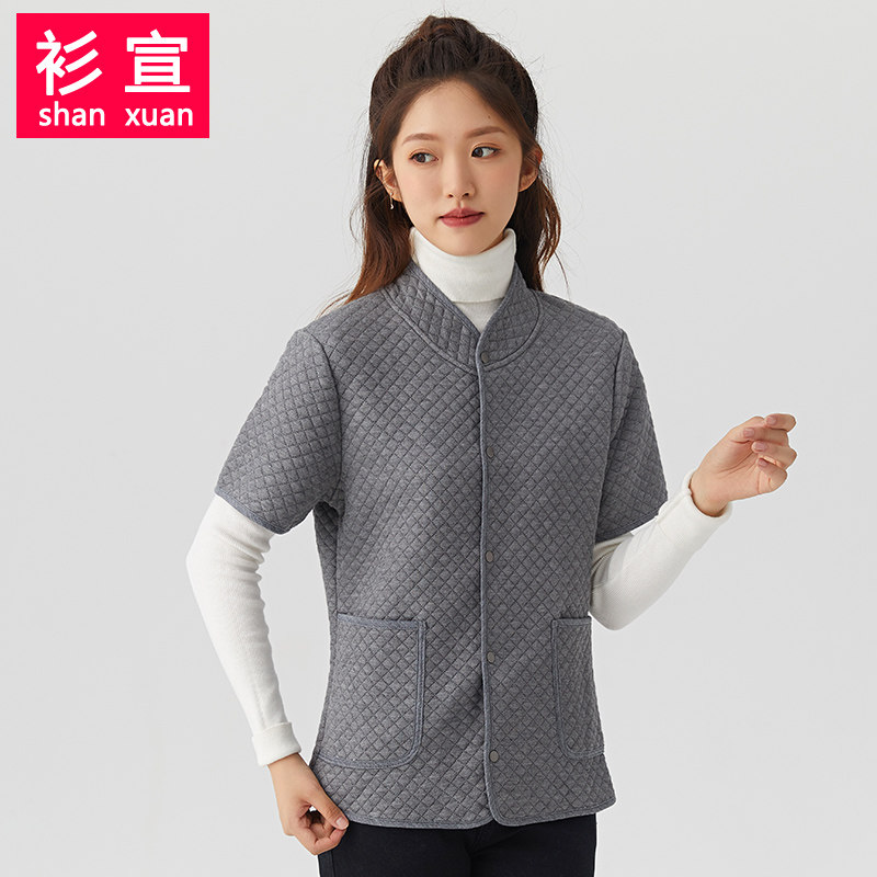 半袖 春秋中老年保暖内衣女针织衫 开衫 五分袖 坎肩纯棉 彩棉马甲大码
