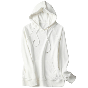 2026春秋新款 白色百搭洋气打底外穿上衣潮 纯色宽松连帽卫衣女薄款