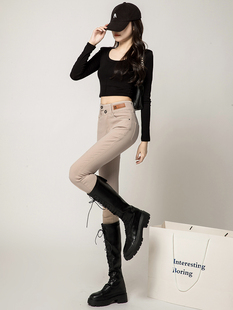 九分拉腿深冬加绒白牛神裤 韩女牛仔裤 超显瘦修身 靴靴穿搭伴侣