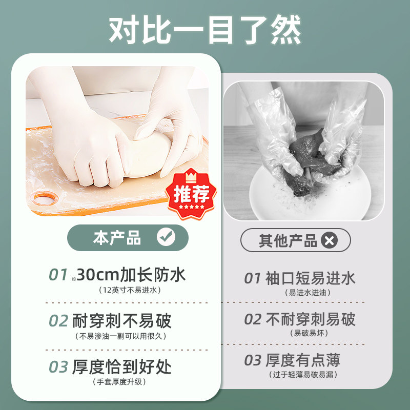 一次性加厚耐磨手套束口加长版 洗碗厨房耐用贴手防水家务防护手套