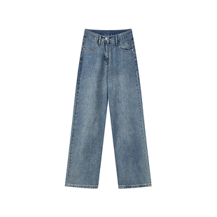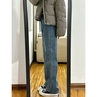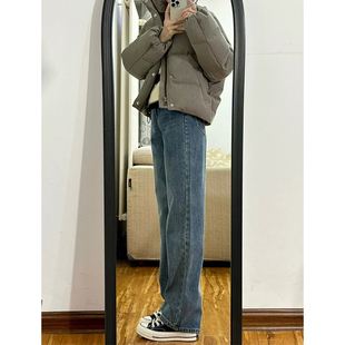 胖妹妹mm高腰宽松显瘦阔腿长裤 梨型身材直筒牛仔裤 女秋冬加绒大码