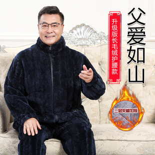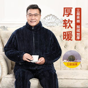 老人睡衣男夹棉珊瑚绒中老年冬季 加厚爸爸保暖家居服加大码