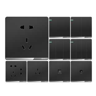 国际电工86型家用黑色开关面板一开五孔带usb电源10A墙壁开关插座