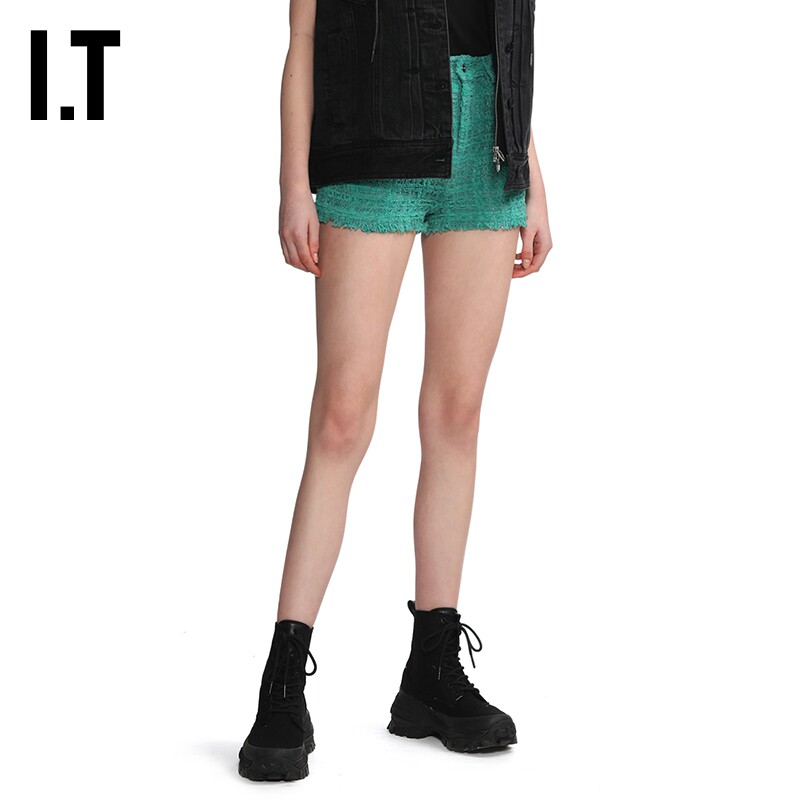 IRO女装 潮流毛边设计合身格纹热裤 花呢短裤 时尚 30ESTAXK 新品