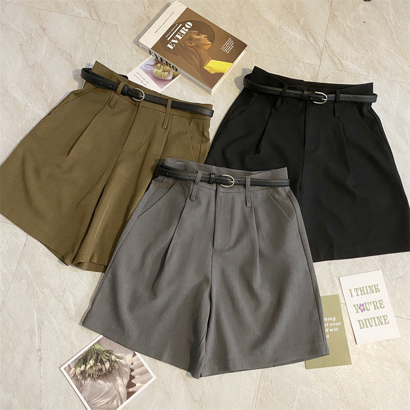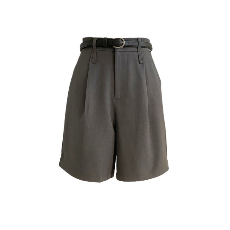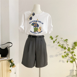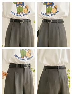 宽松A字休闲直筒高腰阔腿裤 灰色西装 五分裤 女春夏复古中裤 潮 短裤
