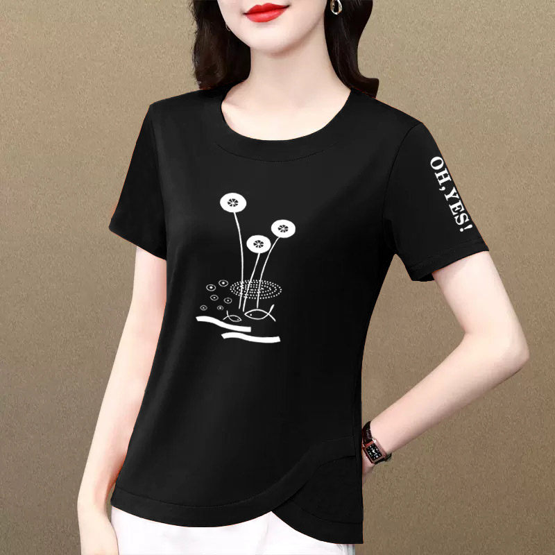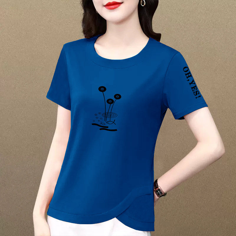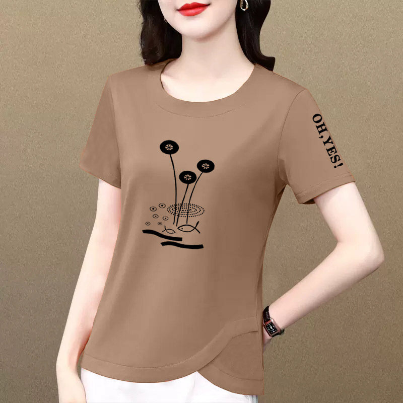 t恤女2026夏季 洋气体恤衫 新款 洋气减龄正肩上衣时尚 时尚 纯棉短袖