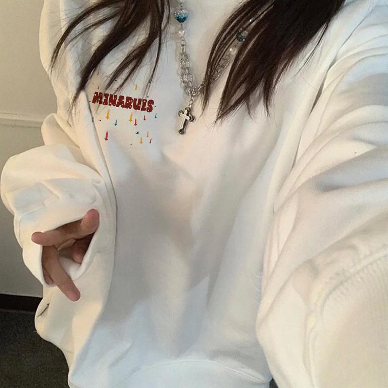 美式 宽松上衣秋冬潮牌加绒外套 高街慵懒chic圆领无帽卫衣女春秋款