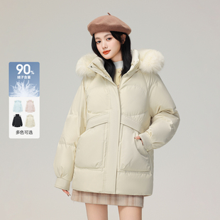 保暖 重磅羽绒服狐狸毛领梦幻蓝公主时尚 雪中飞2025冬新款 女士短款