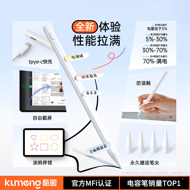 酷盟ipad电容笔apple pencil适用苹果ipad触控笔applepencil一代平板air6触屏笔ipencil二代防误触手写笔通用