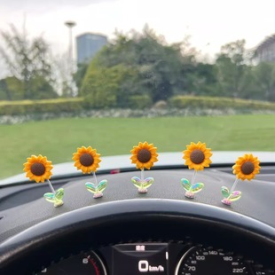 可爱摇头向日葵汽车摆件治愈清新花朵车载中控台后视镜装 饰品摇摆
